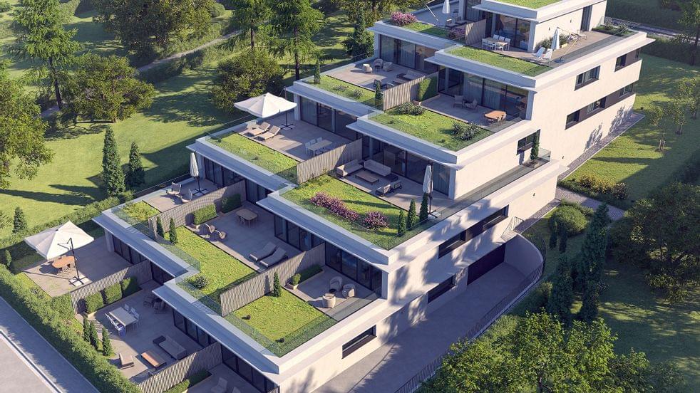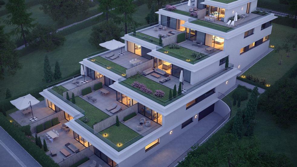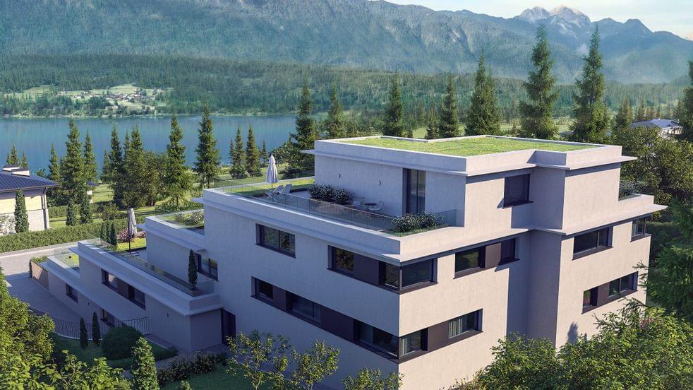 Wenn schon am Morgen beim ersten Blick aus dem Fenster der See verzaubert, dann wird Wohnen Leben. Bis zu 19 Wohnungen in 5 Geschoßen, wobei durch die Hanglage zwei Geschoße zum Teil unterirdisch liegen, begeistern in Zukunft mit dieser echten Traumlage. Ein wunderbarer Mix aus 2- und 3-Zimmer-Einheiten zwischen 40 und 100 m² überzeugt Naturliebhaber und Designfreaks mit idealen Wohnungsschnitten und großzügigen Terrassen. Durch die abgesetzte Bauweise entsteht in allen Geschoßen ein einzigartiges Penthouse Feeling.